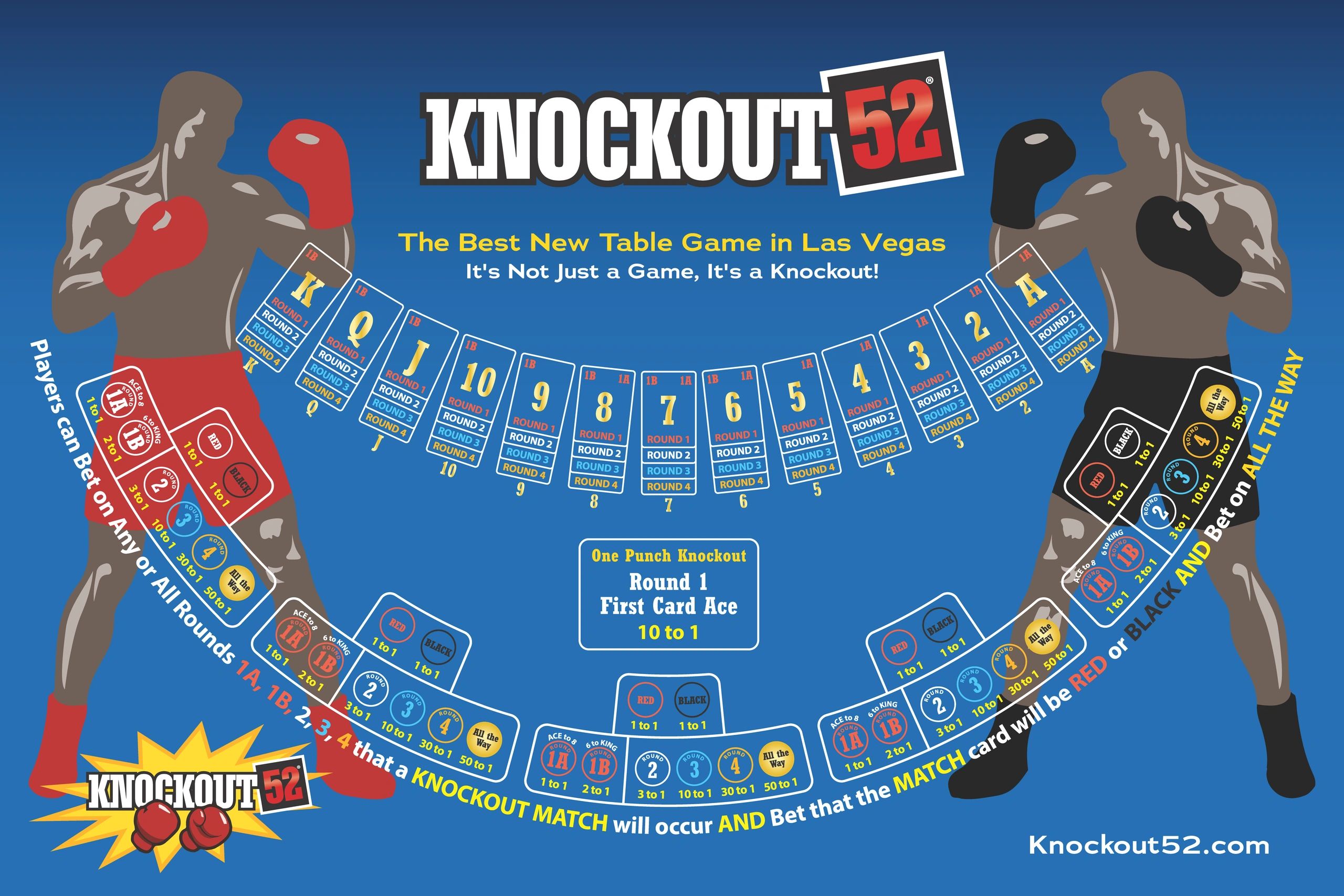 Cards are dealt into the spaces on the Knockout 52 game board starting with the Round 1 Ace until the card number matches the number on the rectangle below.